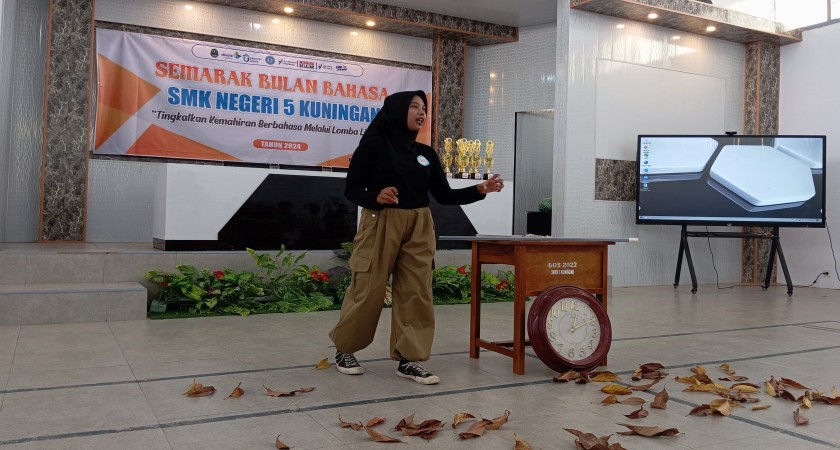 Kuningan (10/2024). SMKN 5 Kuningan menggelar kegiatan bulan bahasa. Tingkatkan Kemahiran Berbahasa melalui Lomba Literasi menjadi tema utama kegiatan ini. Dengan menggambil tiga jenis lomba dari tiga bahasa yaitu Monolog Bahasa Indonesia, Newscaster (Pidato Bahasa Inggris), dan Maca Sajak Sunda ini dimaksudkan untuk dapat mencari dan menyaring peserta didik berprestasi pada bidang literasi.